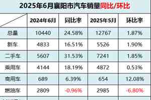 妖数据丨售13006辆 同比涨24.58%!2025年6月襄阳市汽车销量报告新鲜出炉