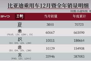比亚迪4月销售210295辆,含乘用车出口14827辆