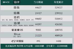 比亚迪公布2021销量成绩:新能源汽车占比高达81%
